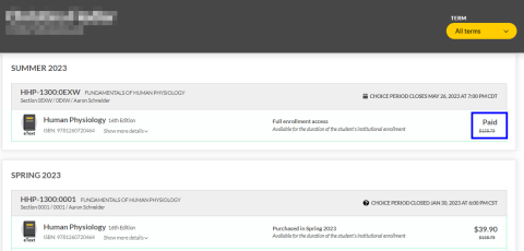 - If you can't deselect an item that is marked "Paid," your license to the material is still active and you do not need to opt out to avoid a charge for this content.